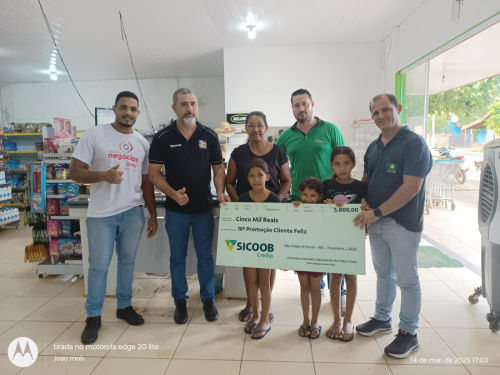 No dia 14 de março o vice-presidente João Batista, Rafael gerente do Supermercado Smart Oliveira, Ademir gerente da SICOOB e a secretaria executiva, foram à Querência do Norte fazer a entrega do prêmio de 5.000,00 reais da 18° promoção cliente feliz para a ganhadora Maria Conceição de Souza, ela nos contou que “tinha feito compra no Mercado Oliveira do associado Fabio e ganhou uns cupons, levou para casa e umas das netas pegou uns para brinca e acabou rasgando sobrando apenas 4 cupons que acabou colocando na urna no dia que o Fabio estava para mandar a urna para o sorteio, ela acreditou que se fosse para ganhar ela iria ganhar com ales 4 cupons”, e ganhou, todos ficaram impressionado com a fala dela, isso nos mostra que quando acreditamos não precisa de muito cupons para ganhar basta ter sorte de aquele um ser sorteado.